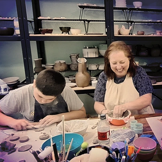 Pares i fills crearandecoracions festivesper penjar en ceràmica. Cadascú escull el seu propi motiu: nadalenc, hivernal, fi d'any o qualsevol idea que els inspiri.Una manera divertida i creativa de compartir temps junts i emportar-se a casa peces exclusives.